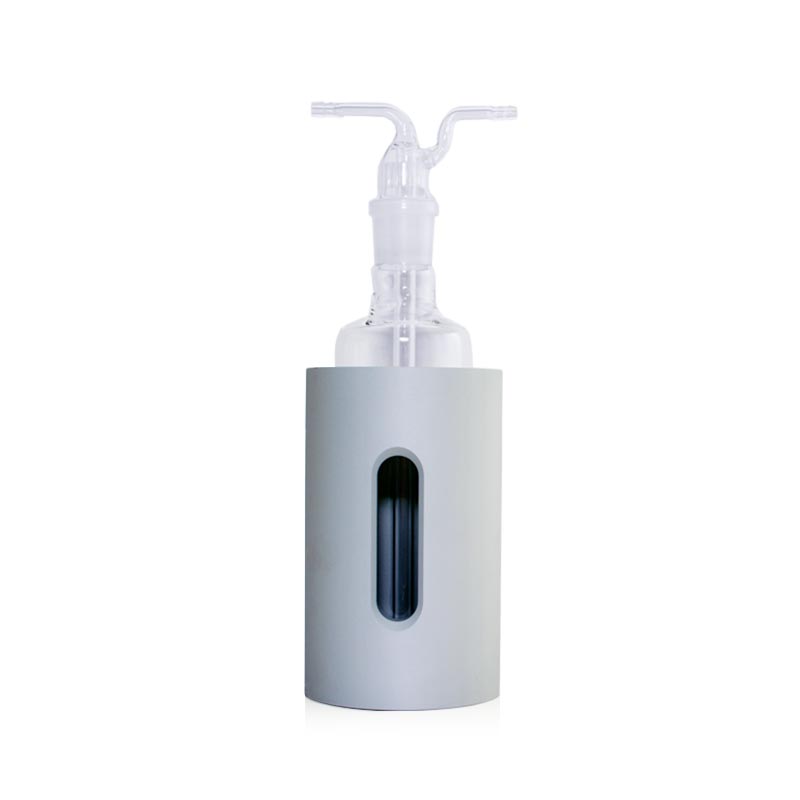The gas (bubble) bobble flask humidifies the 5% CO2 gas mixture before use. The humidified gas is used for conditioning the IVF culture media, and as a gas flow source in connection with oocyte aspiration or embryo transfer.
