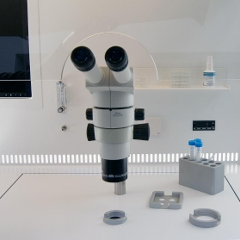We have different glass hoods creating an environment of CO2 to the culture dishes helping equilibrate the culture medium.