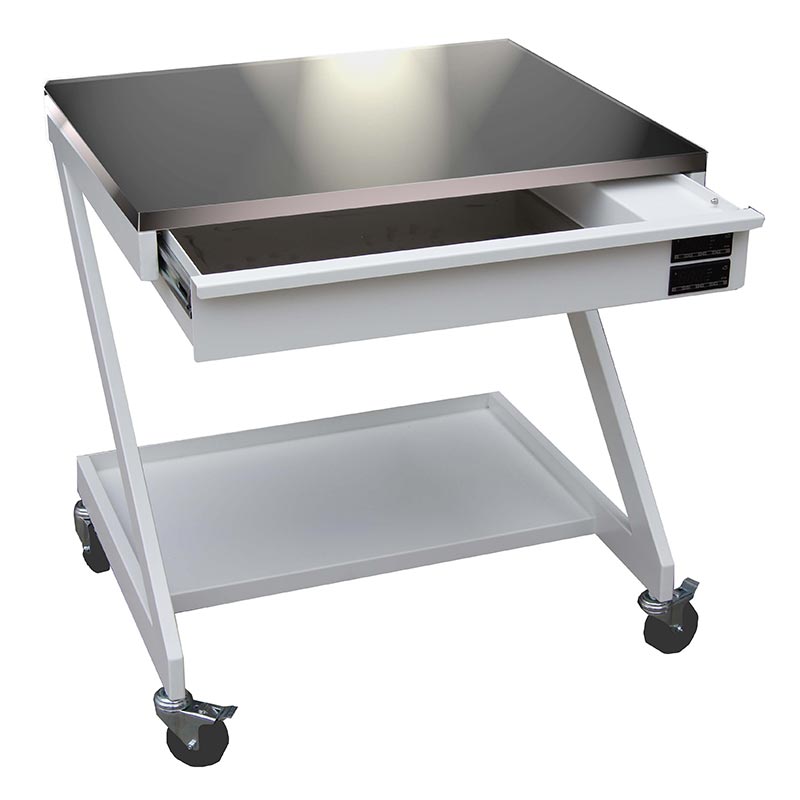 The IVFtech I-Table comes on wheels with a HiMacs® surface, a heated drawer on an electrically adjustable stand. The IVFtech Z-Tables come on wheels with a HiMacs surface or stainless steel surface, in two sizes with or without a heated drawer.